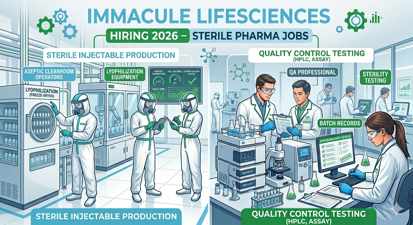 Looking for career growth in sterile pharmaceutical manufacturing? Immacule Lifesciences is actively hiring for multiple roles in Sterile Production, Engineering, Quality …