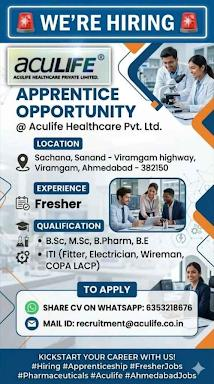 Joining Aculife Healthcare Private Limited as an apprentice offers: