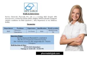 Akums Drugs & Pharmaceuticals Ltd, India’s leading Contract Development and Manufacturing Organization (CDMO), has announced an urgent walk-in interview for experienced …